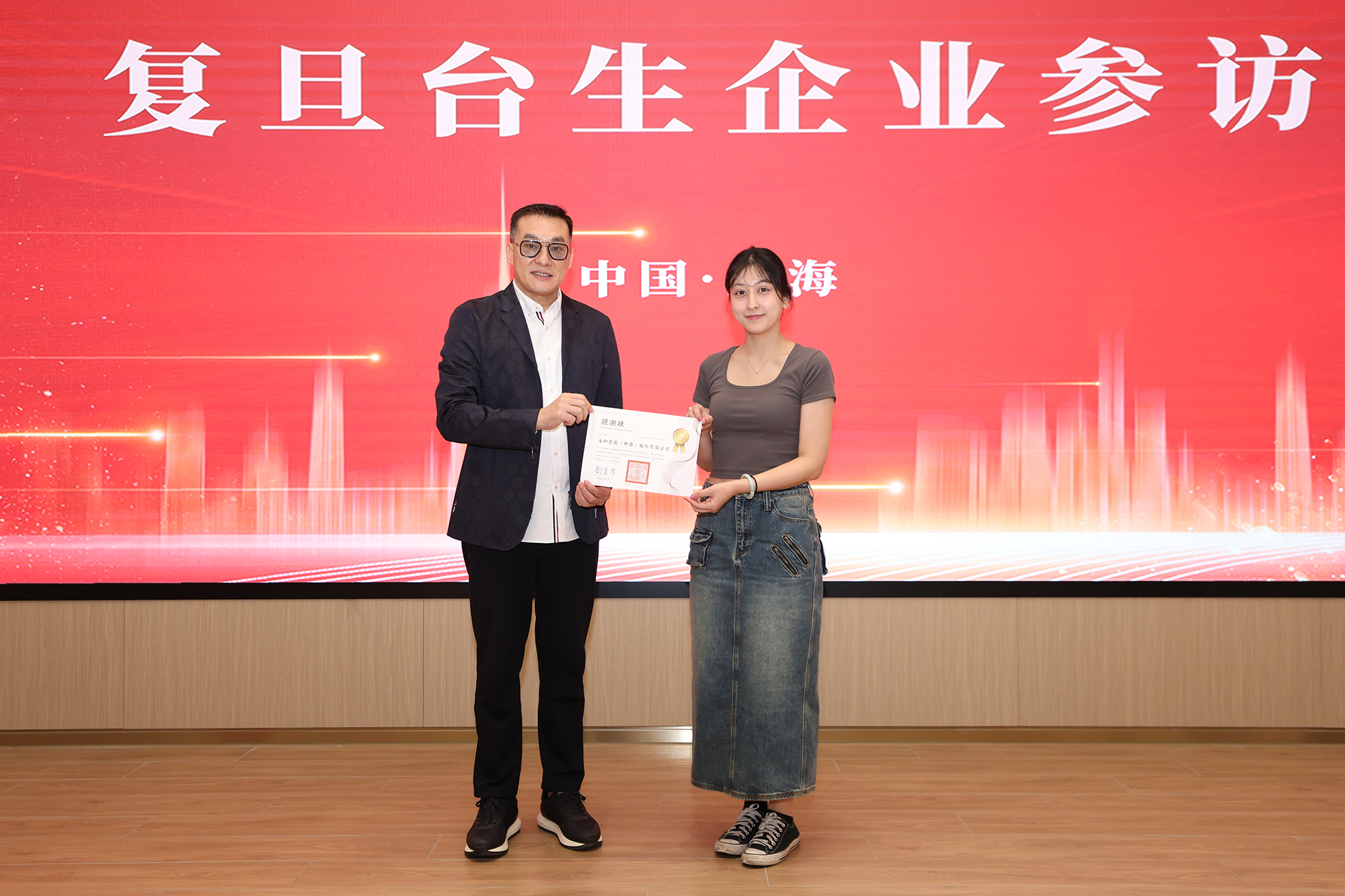 復(fù)旦臺(tái)生代表為永和食品送上感謝狀